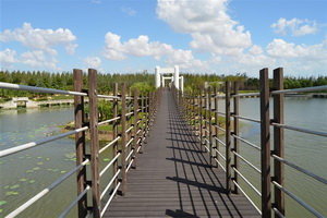 滨海森林公园以生态学理论作为规划指导思想,是东海滩涂上建筑的人工森林公园,设计总面积达3.6平方公里。它以自然生态学为设计理论,模拟自然森林生态,充分贯彻“以人为本,与自然共存”的理念,将森林、草地、沼泽、沙滩、水面等组成观赏性、娱乐性具备的整体生态系统。运用植被的丰富多样,最大限度地增加绿量,强化多层次美感而彰显文化内涵。滨海森林公园设计总面积360公顷,投资额达3.2亿元。其中森林252公顷(占70%),河湖90公顷(占25%),建筑、道路停车场18公顷(占5%)。园内布局各具特色,旅游、休闲、娱乐、餐饮、住宿、疗养设施完备,功能齐全。配套设施先进。森林公园将成为上海市郊乃至全国的旅游胜地。 融现代科学技术和文化为一体的滨海森林公园,模拟自然森林风光创造人与自然和谐共处的绿色氛围。游人身临其境与大自然融为一体,开展各类野游、观赏、休闲、娱乐活动,是极为理想的自然环境。由此远离尘嚣,舒缓压力,强健体魄,陶冶性情,并可激发艺术创作灵感。 |