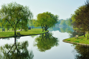 共青森林公园位于上海市杨浦区,东濒黄浦江,西临军工路,全园总占地1965亩,开放公共绿地1870.6亩,其中北园“共青森林公园”1631亩,南园“万竹园”239.6亩。 上海共青国家森林公园是以森林为主要景观的特色公园,共种植200余种树木,总数达30多万株。公园分为南北两园,北园占地1631亩称为共青森林公园,南园占地239.6亩称为万竹园。南北园风格各异,北园着重森林景色,有丘陵湖泊草地,南园则小桥流水一派南国风光。除观景之外,游人也可在园内骑马,烧烤和垂钓。