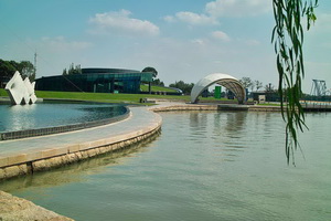 月湖雕塑公园依托山林和月湖资源,精心创设了寓意为春、夏、秋、冬四大主题的功能性区域景观,设置了游客服务中心、儿童智能活动广场、月圆园婚纱会馆、日月一号和秋月坊等公共休闲、娱乐场所。园区以“回归自然、享受艺术”为建设理念,是一座集现代雕塑、自然山水、景观艺术于一体的综合性艺术园区。月湖雕塑公园园区一期占地1300亩,其中月湖面积465亩,环湖腹地分为春夏秋冬四岸,来自世界各国现代艺术家所创作大型雕塑四十余件,融合于山水美景中,别具特色。月湖雕塑公园入口设计精致简约,正中央耸立的巨型雕塑“飞向永恒”也是一座具备功能性的现代化艺术造型日晷,为保加利亚籍旅意雕塑家吉沃吉·菲林所创作。两排直挺的加那利树精神抖擞地列队,热情地欢迎着每位游客,邀请您进入一个充满知性、感性的艺术桃花源。 月湖雕塑公园依托山林和月湖资源,精心创设了寓意为春、夏、秋、冬四大主题的功能性区域景观,设置了游客服务中心、儿童智能活动广场、月圆园婚纱会馆、日月一号和秋月坊等公共休闲、娱乐场所。 |