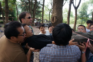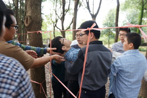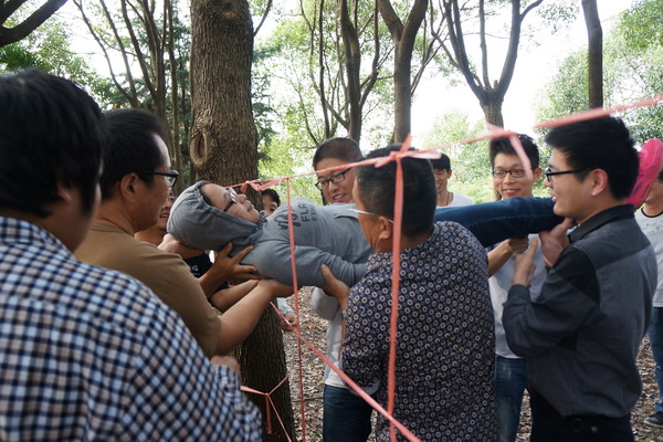 项目简介: 团队成员站在绳网的一边,一个一个穿过1分、3分、5分的绳网,不能碰到绳网上的任何线绳,1分与3分的绳网每个只可穿越一次(无论成功与否),5分的绳网可穿越无数次, 两边的成员可以帮助中间的穿越者进行穿越,但也不可碰到绳网。以得分最高的团队为胜者。穿越过程中身体的任何部位,包括衣物均不能碰到绳网。 项目目的: 1、确立方案,明确分工,有效的组织协调是团队成功的关键; 2、有效的利用搭配资源,是团队成功的质量; 3、相互协调和精心操作,才能保障计划的顺利实施; 4、感受面对困难时,应有的态度和做事方式; 5、摆正个人在团队中的位置(角色定位),是团队成功的基础;