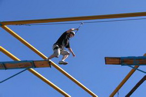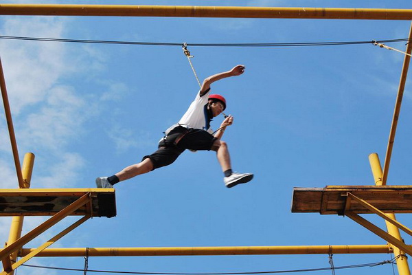 项目简介: 队员先穿戴好保险装备并系好安全绳后爬上 8 米左右的高台,在 0.8 米远出有另一 8 米左右的高台,跨越并站在另一处高台上,然后从另一高台出下来。 项目目的: 1、“断桥一小步,人生一大步。”自我突破,挑战自我,超越心理障碍,全力以赴,克服队员的畏难情绪; 2、同样的项目在地面完成是容易的,但是换到高空为什么就那么难呢?通过高空中的项目,增进员工的适应性; 3、通过加油、鼓励、关注等让学员认识到相互激励与关爱是一个优秀团队的必备因素; 4、以积极的心态去争取和获得机会; 5、认知心态对行动的影响,学习缓解心理压力;