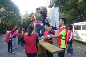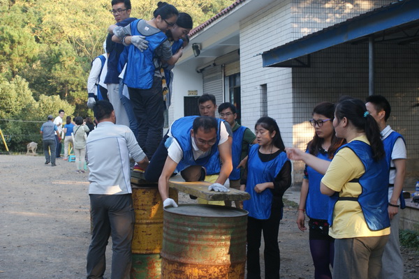 项目简介: 团队成员全部站在木板上,木板架在油桶上,人和木板均不可着地,从起点至终点移动木板和油桶。人、木板和油桶全部过终点即活动结束。记分以培训师 宣读完规则后开始, 至所有人和道具过终点为止,用时最短的团队为胜者。 项目目的: 1、激发员工协作零阻力品质;适合公司内部增强凝聚力,可以促进小队成员之间 的交流和配合,达到公司要求的培养团队精神的活动目的。 2、激发团队之间的信任感; 3、培养学员在解决问题时,合理分配人力资源,分工协作的能力; 4、增强身体的协调力以及平衡能力; 5、锻炼个人的决策力和执行力; 6、加强沟通能力,在混乱紧张的情况下学习如何有效沟通;