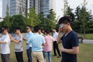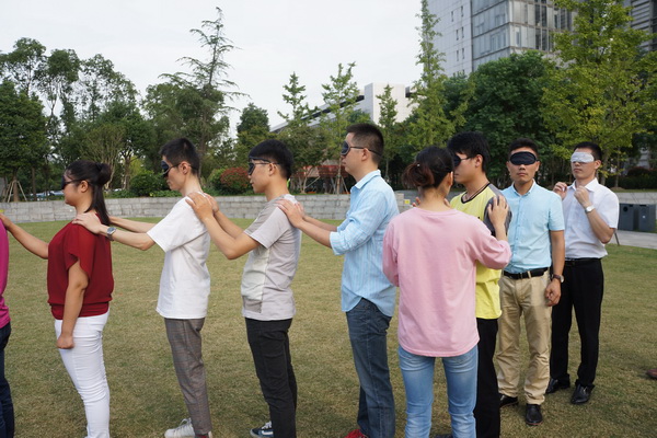 项目简介: 一队队员戴上眼罩,分散站立在指定的范围内。将事先准备好的写有数字的纸片,分发给每个队员,并告诉队员各自所代表的数字。最终的结果是要队员从1至最后一个数字 成一列排好。但是在排列的过程中不允许说话,只允许用身体语言或者其他方法,进行“交流”。 项目目的: 1、培养学员表达彼此信任、彼此合作的意愿; 2、培养团队学员的科学思维方式和决策能力; 3、使学员理解角色定位及尽职尽责完成本职工作的重要性; 4、让学员明白只有相互的信任、共同的协作,依靠团队力量,才能短时间内完成任务;