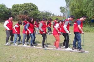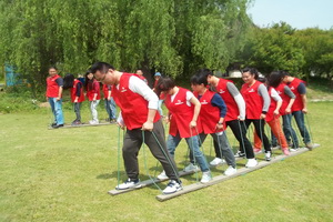 项目简介: 手推车项目要求所有参训队员在一片空旷的大场地上,以8-12人拆分为多个小组,每个小组的全体队员两脚分别踩着两根长约3.6米宽约0.15米的木板,手提两根连接木板的 绳子,按照教练的命令前进或后退(教练员可以增加其难度,如上坡、拐弯、后退等)。两块木板就是鞋子,团队成员同时站在木板鞋子上行走直至目的地。 项目目的: 1、培养团队精神,感受个人与集体的关系; 2、团队的进步是建立在个人进步的基础上的,只有个人进步了,才能带动整个团队的前进; 3、让队员们体会团队中服从分配的必要性; 4、培养领导者在团队遇到紧急情况时,迅速统一团队意志的能力;